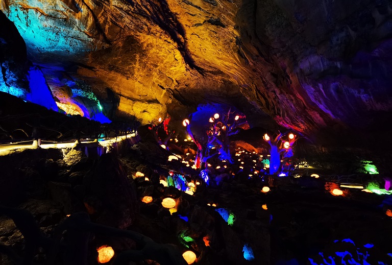如何設計打造溶洞夜景燈光秀才能更吸引人?溶洞的景觀如詩如畫,經過自然之美來烘托溶洞本身特征。普通中藝光影秀在停止燈光秀設計時,會經過自然化藝術化、場景化、科技化相分離,打造一個藝術與科技兼并的溶洞光影秀,讓游客在這里感受自然、藝術、科技交融的美好。那么,終究應該如何設計打造溶洞夜景燈光秀才干更吸收人呢?溶洞——3D投影在溶洞內的洞壁上,用3D投影技術演繹溶洞的構成原理,特征,以及地質學問,歷史文化特征等等,讓游客在這里感受藝術與科技的交融。 END溪河、暗河——投影、水幕電影 溶洞的溪河、暗河則依托水紋燈,將山體、形態、顏色與河流的投影交互,相映成趣。在溪河、暗河河面比擬開闊,平整的中央中藝光影秀會思索打造水幕電影,光影交匯,絢麗多彩。 瀑布——燈品設置加投影瀑布傾注而下,裝置水底燈、煙霧燈,呈現煙霧旋繞的仙境景觀,并運用多媒體投影技術打造魚、蓮花等人魚可互動的瀑布景觀。END絕壁——山體投影1中藝光影秀經過對溶洞地質文化的提煉和當地歷史文化的解讀,創意設計出多媒體投影內容,投影在絕壁上,讓游客體驗圓滿的娛學閱歷。